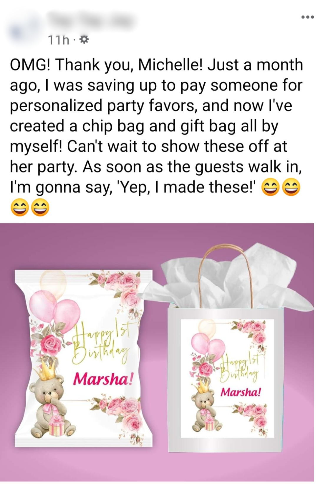 My breakthrough came with designing digital party items like chip bags banners and juice labels, which not only catered to a vast audience but also allowed for personalization, increasing their value and appeal. This shift led to consistent sales and the joy of waking up to new orders every day, sparking my unapologetic love affair with passive income!