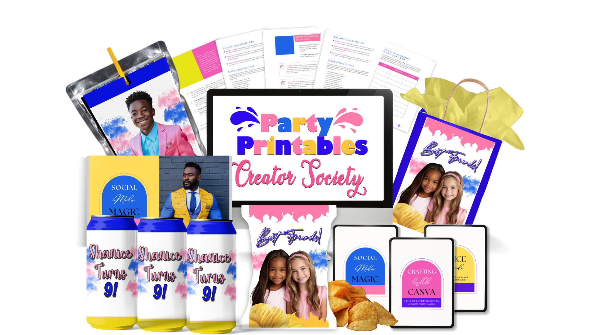 Creating once and earning forever has not only boosted my income but also given me the freedom to focus on what truly matters—family and friends. Now, I’m here to share my journey and insights with you, helping you navigate the exciting world of digital party printables and open the door to your own world of opportunities.